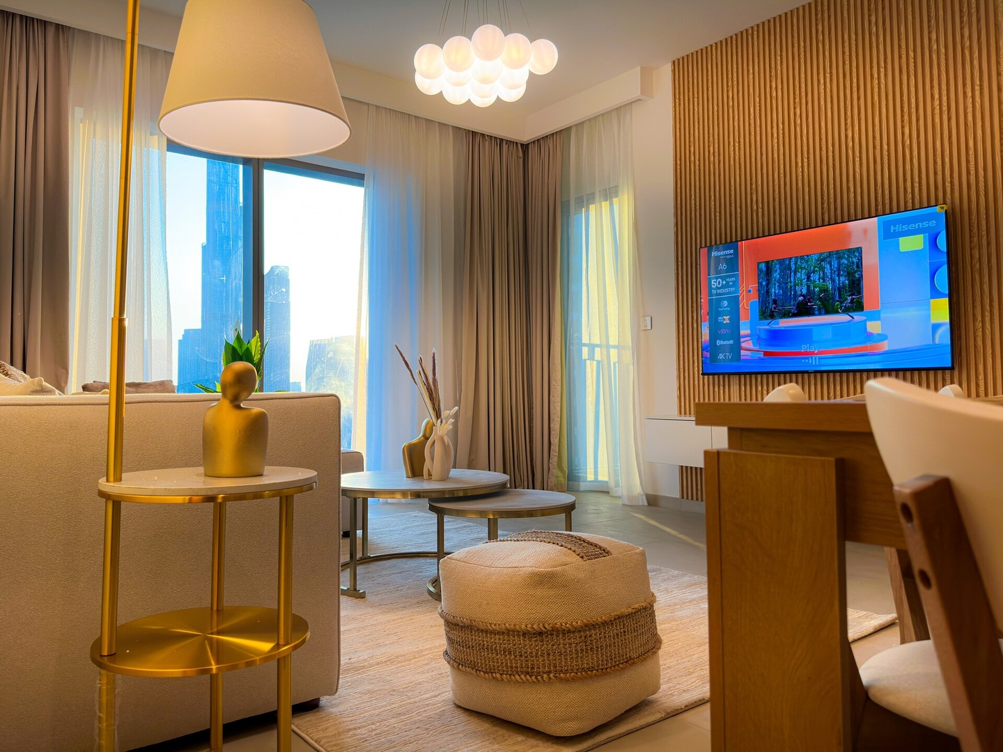 This 5 Star 3-bedroom unique place with Burj Khalifa and with fountain view has a style all its own, in Downtown Dubai is perfect for your next upcoming stay in Dubai! This is a pedestrian-friendly district, and making is easy to explore. You are within walking distance of some of Dubai’s iconic sites like Souk Al Bahar, Dubai Mall, and the stat Burj Khalifa. Take a walk down the picturesque Boulevard, lined with palm trees with glistening fairy lights.